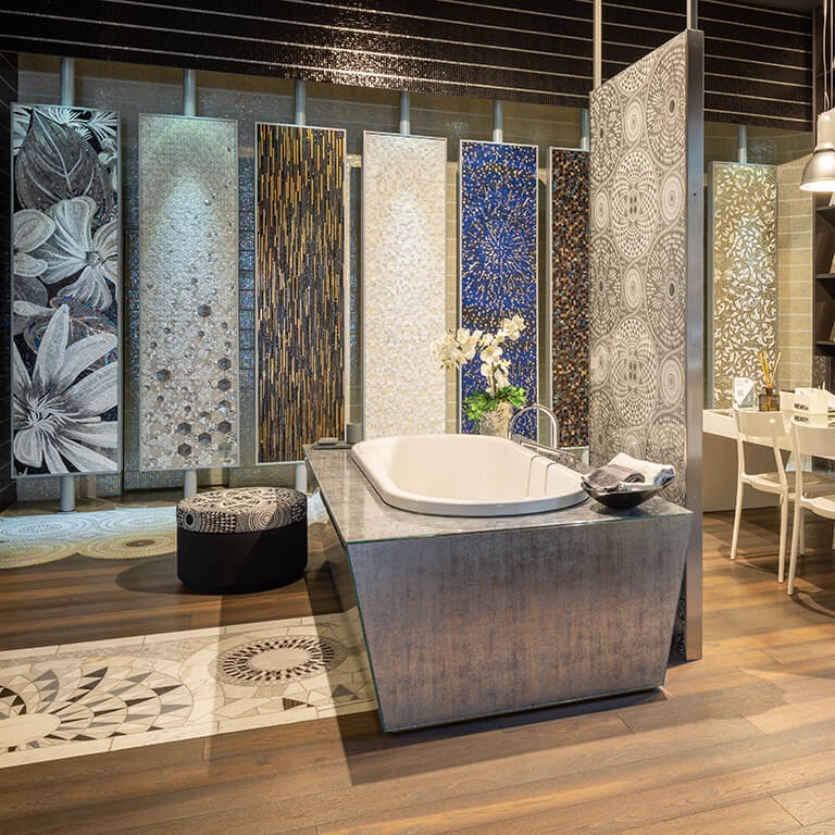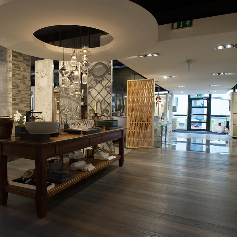 In unserem Showroom mit über 1400 m² stellen wir reale Konzepte vor, bei denen du die Produkte anfassen kannst, für eine einzigartige Erfahrung im New-Line-Stil. Lass dich von unseren Experten durch eine breite und erlesene Produktpalette führen: Keramikfliesen, Parkett, Wandverkleidungen, Badezimmereinrichtung, Türen, Sauna und Türkisches Bad. Alles, was du für deine Hausausstattung brauchst!