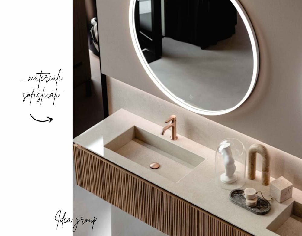 Per quanto riguarda l’arredobagno IdeaGroup, nostro storico fornitore, al Cersaie ha presentato le novità 2025, per un arredo dalle linee sinuose e materiali sofisticati.