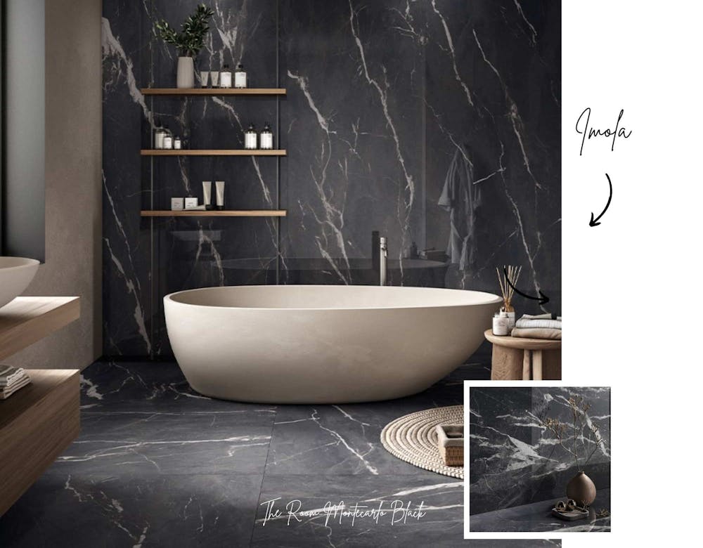 Imola, che tra l'altro ha compiuto i 150 anni di attività proprio quest'anno, ha presentato anche quattro nuove proposte per la collezione THE ROOM™ e tra le quattro senza dubbio Montecarlo Black spicca per intensità. E’ un marmo di provenienza africana di colore nero attraversato da venature bianche di diversi spessori. Stupendo!