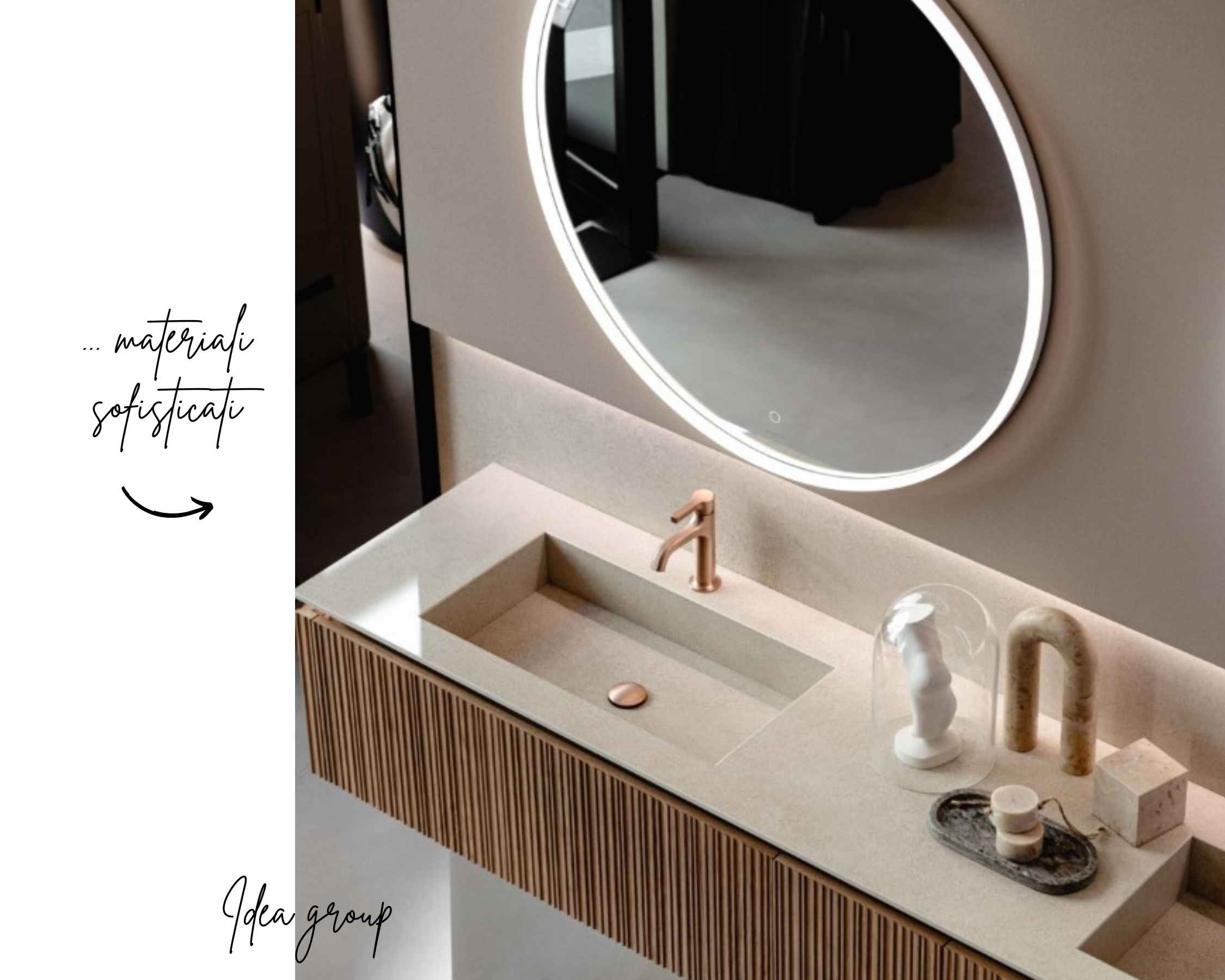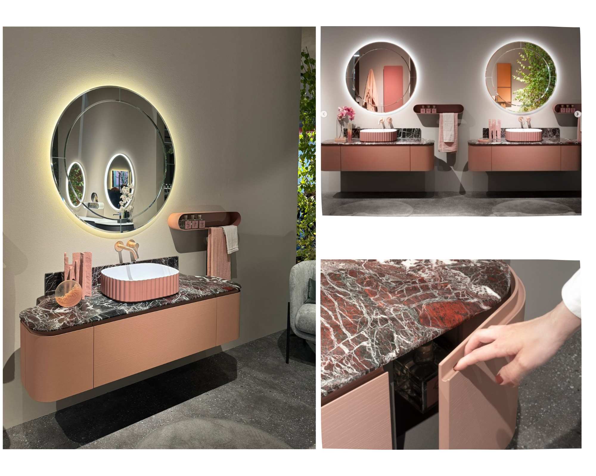Per quanto riguarda l’arredobagno IdeaGroup, nostro storico fornitore, al Cersaie ha presentato le novità 2025, per un arredo dalle linee sinuose e materiali sofisticati.
