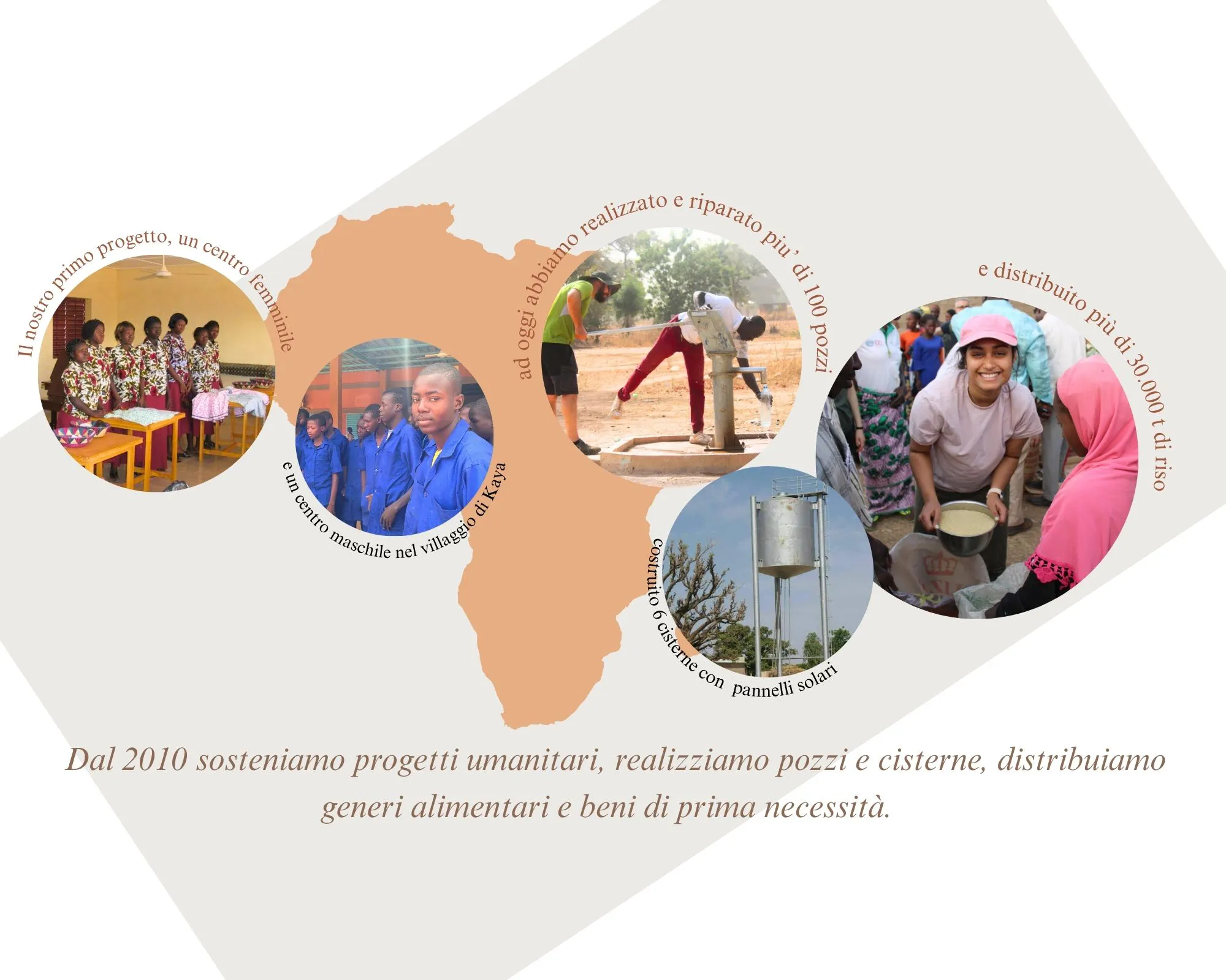 - Cisterne - Progetti più impegnativi, ma fondamentali perché permettono di aiutare su larga scala, favorendo lo sviluppo dell’agricoltura.
