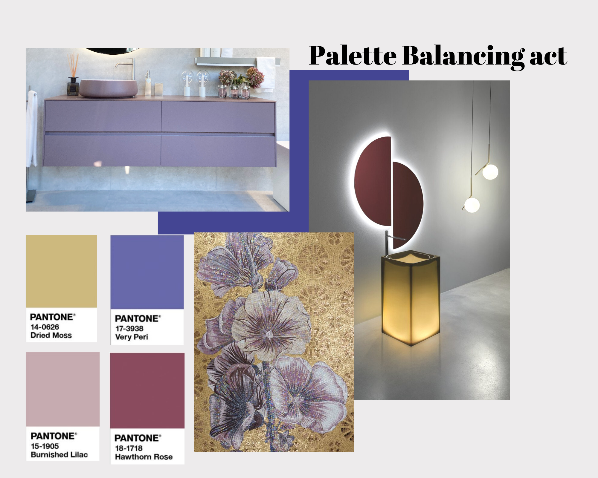 La Palette The Star of the Show accosta toni neutri e classici come i grigi, i bianchi, i tortora e i quercia, a un elemento Very Peri, non trovate che rendano gli ambienti eleganti e raffinati?